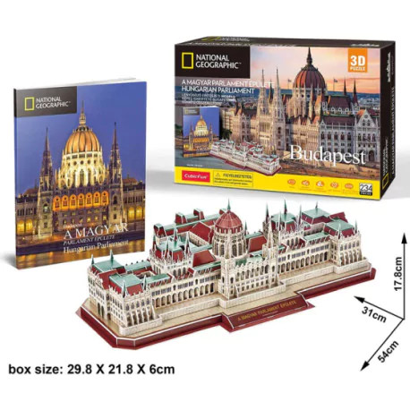 A Magyar Parlament élethű makettjét állíthatod össze 234db 3D puzzle elemből. A makett mérete: 54 x 31 x 17.8 cm