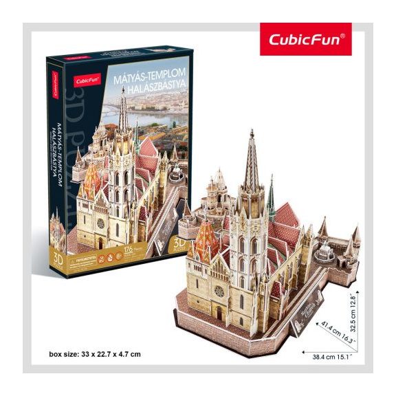 Budapest két leghíresebb épületének - a Halászbástyának, és a Mátyás templomnak- élethű makettjét állíthatod össze 176db 3Dpuzzle elemből.