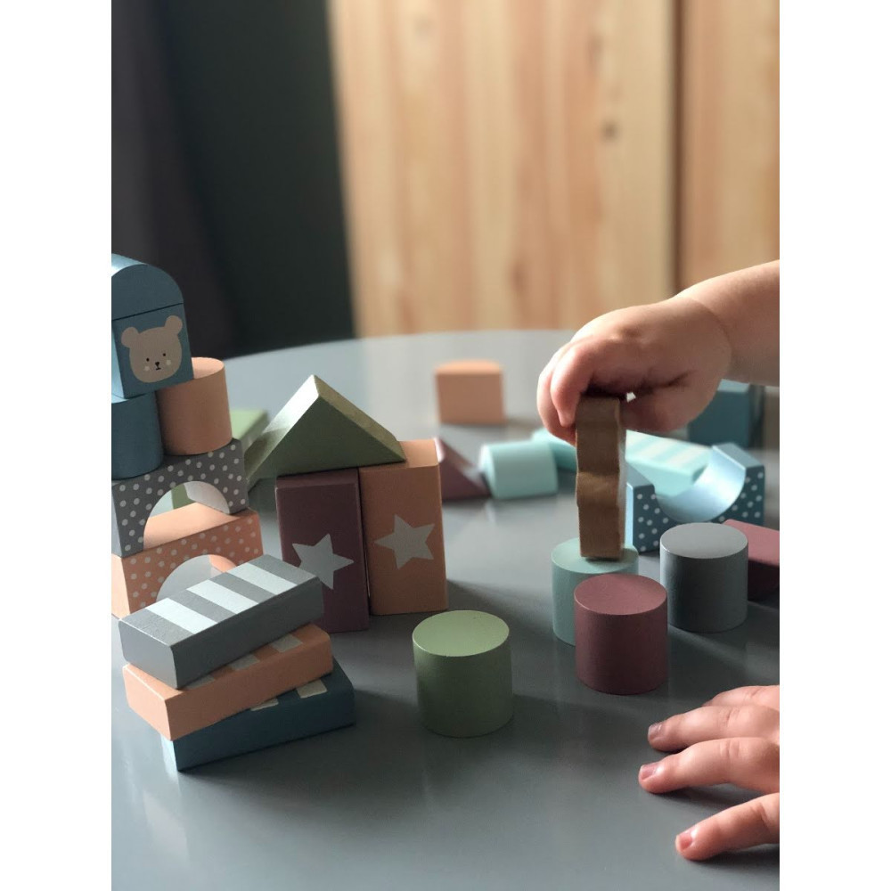 Fa építőkészlet 49 különböző színű és formájú elemmel!
