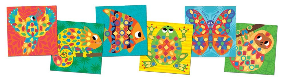 A készletben 6 db kép, 281 öntapadós színes kő, egy kartonból készült képtartó állvány és egy színesen illusztrált útmutató található.