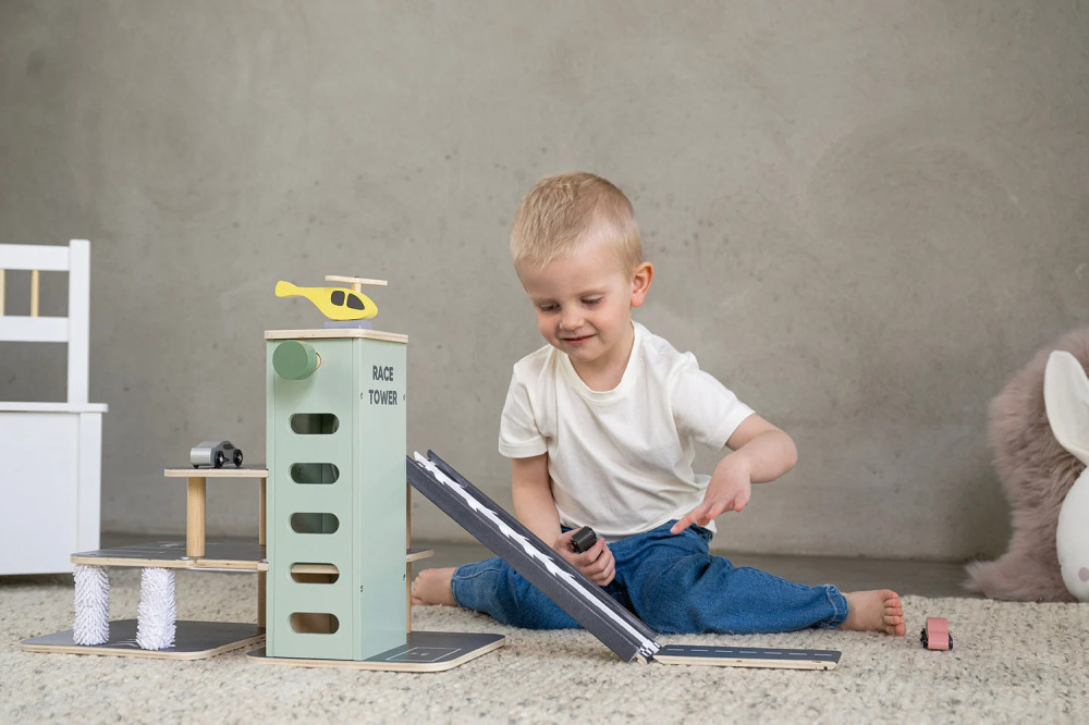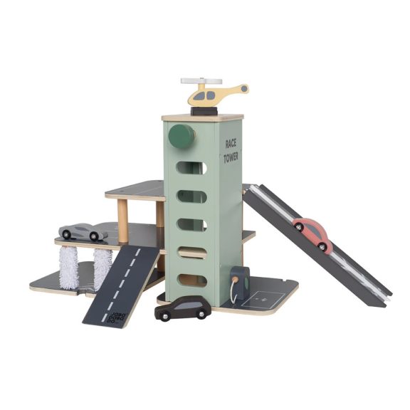 Versenyezz barátaiddal a rámpán, ahol két autó egymás mellett haladhat. Ki lesz a gyorsabb? Ezután tankoljátok vagy töltsétek fel az autót, majd a lifttel újra a parkolóház tetejére juthattok. Ha az autók útközben összekoszolódtak, vegyétek az irányt az alsó szinten található autómosóba. A játékkészletben egy helikopter is található.