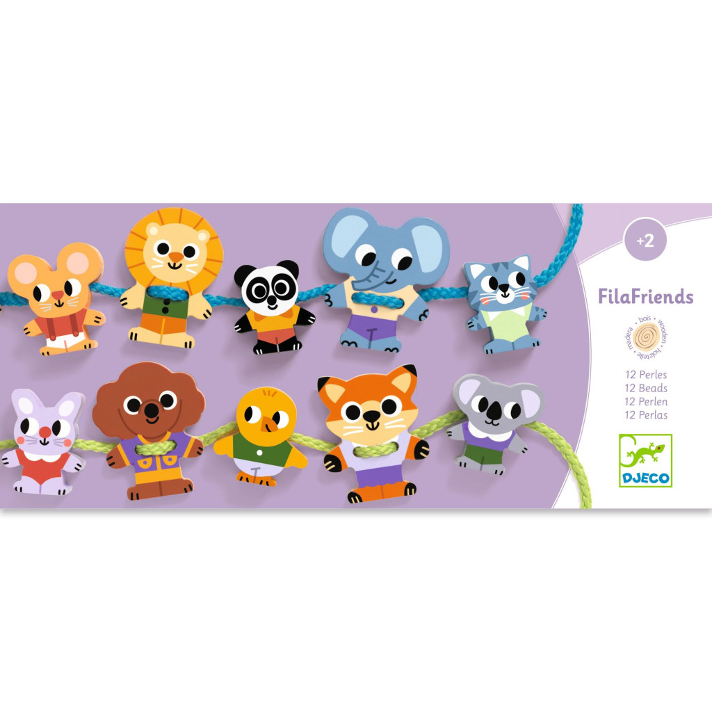 A gyermek a szülő segítségével gyakorolhatja a majdani a gyöngyfűzés alapjait a hosszúkás gyöngyök és az állatfigurák felfűzésével. Ideális 2 éves kortól a gyermek első ilyen irányú tanulására. Segíti a gyermek finommotorikus készségeinek fejlődését. Ez a játék a kicsi figyelmét hosszasan leköti. Úgy van tervezve, hogy a legkisebbeknek is sikerélményt nyújtson, a zsinórok végei merevek és hosszúak, hogy megkönnyítsék a különböző darabok befűzését. A fafigurák könnyen megfoghatók a kis kezekkel. A kép alapján történő felfűzés gyakoroltatja a sorrendiséget is, aminek a tudása szintén fontos a gyermekek fejlődéshez.