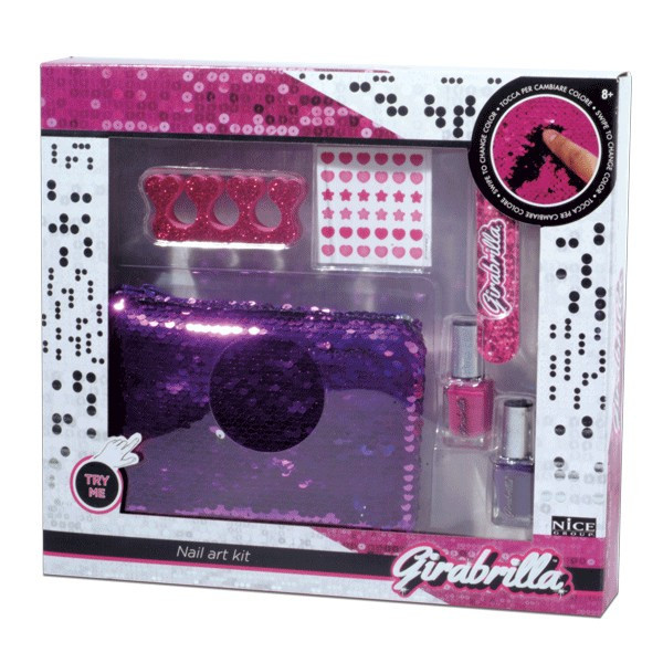 Töltsd fel az inverz flitteres kistáskát a 2 körömlakkal, reszelővel, lábujjelválasztó szivaccsal és körömmatricákkal, és vidd magaddal bárhová is indulsz!