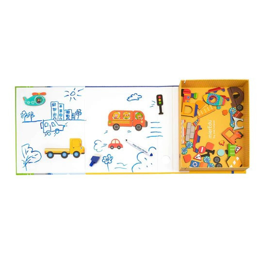 Ezek az oktató mágneses kirakós játékok könnyen hordozhatók, és útközben is szórakoztatóak. Mágnesek segítségével a gyerekek saját történeteket és képeket alkothatnak a táblán, megelevenítve fantáziájukat. Az 57 mágnesből, 8 kártyából és 1 letörölhető jelölőből álló tok kényelmesen becsomagolható, és könnyen hordozható. A tok kinyitása után nagyméretű, letörölhető rajztáblává alakítható, így a gyerekek rajzolhatnak és elkészíthetik saját történeteiket. A mágneses művészetek játékok tökéletesek a kreativitás, a rajzolás és a finommotorika fejlesztésére.