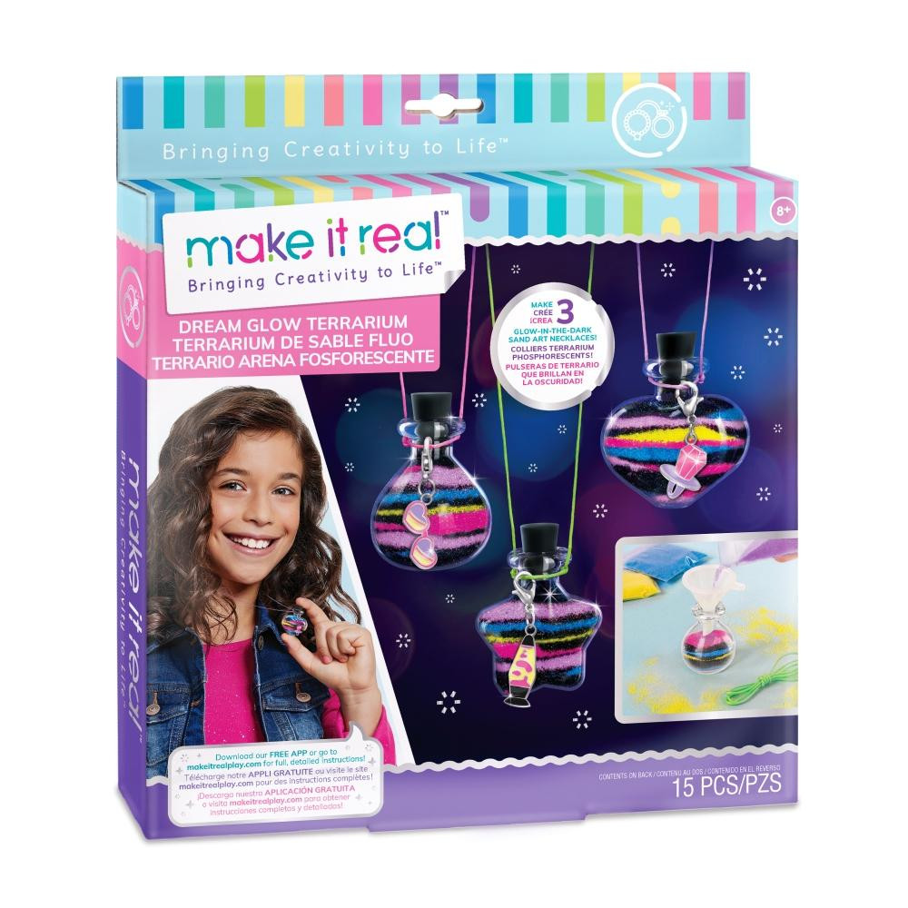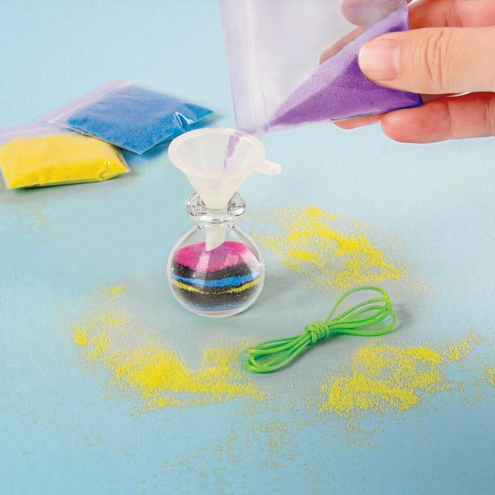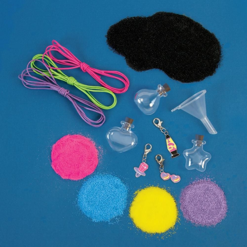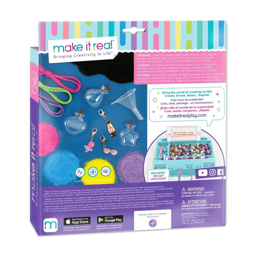 Tervezd meg és készítsd el saját, egyedi csillogó medálod a Make It Real Ékszerkészítés, Álomfény üvegcse készlettel! Engedd szabadjára képzelőerőd és hozd létre a legragyogóbb szín kavalkádot a különböző formájú palackokban. A csomagban található kis tölcsér segítségével aprólékosan, precízen keverheted, kombinálhatod a különböző színekben pompázó, sötétben ragyogó homokokat a palackok feltöltésekor.