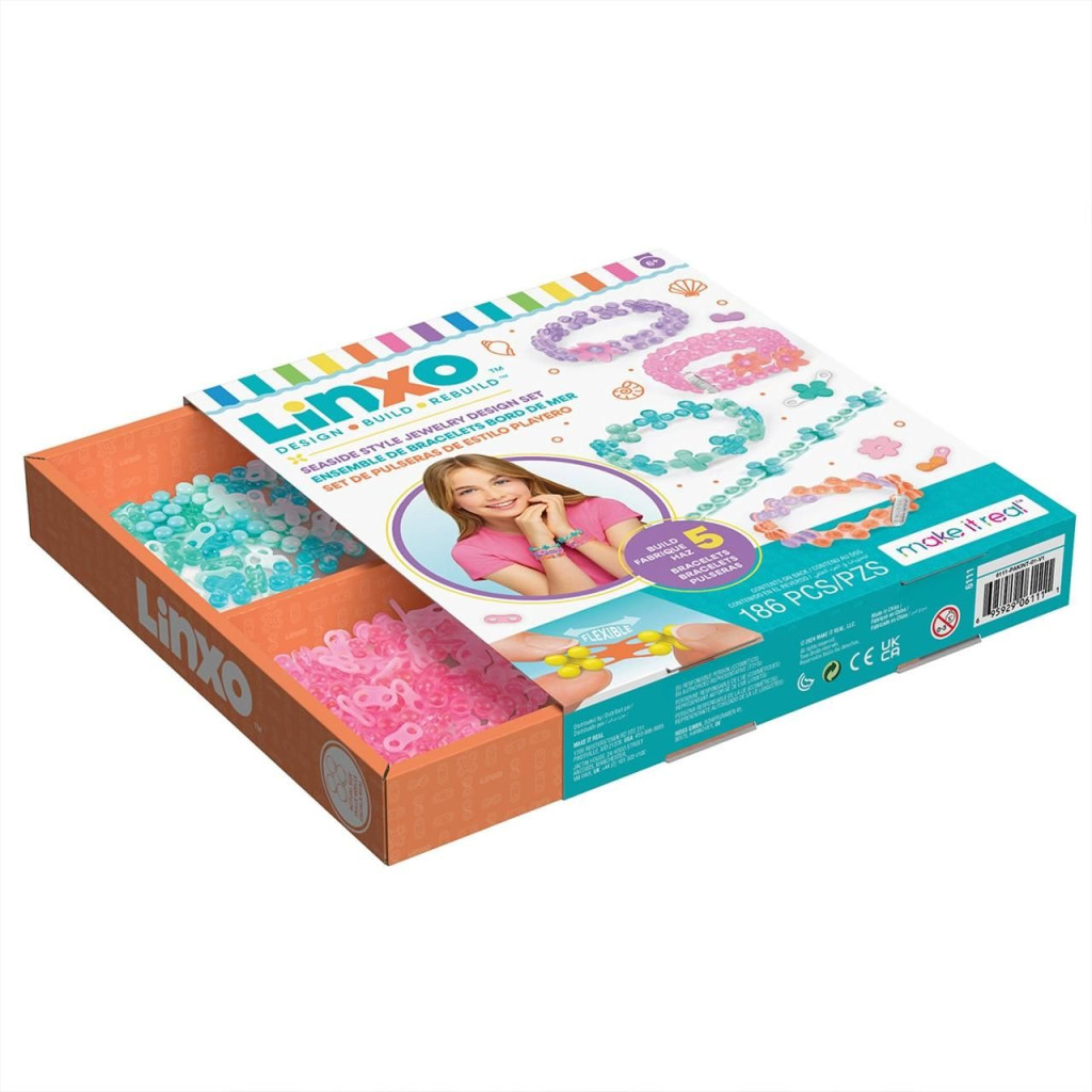 Ebbe az új világba segítenek belépni a LinXo ékszerkészítő szettek. Ezt a csomagot a fénylő tengerpart varázslatos, enyhén áttetsző színei ihlették. A mintegy 186 darabos csomagból 5 karkötőt készíthetsz el. Hagyatkozhatsz a saját fantáziádra és kreativitásodra, vagy használhatod az útmutató füzetet is, hogy elsajátítsd a legjobb technikákat. A kapcsokból és a LinXo pötyi gombokból többfélét is találsz a képletben, így a megoldásoknak tényleg csak a képzeleted szab határt.
