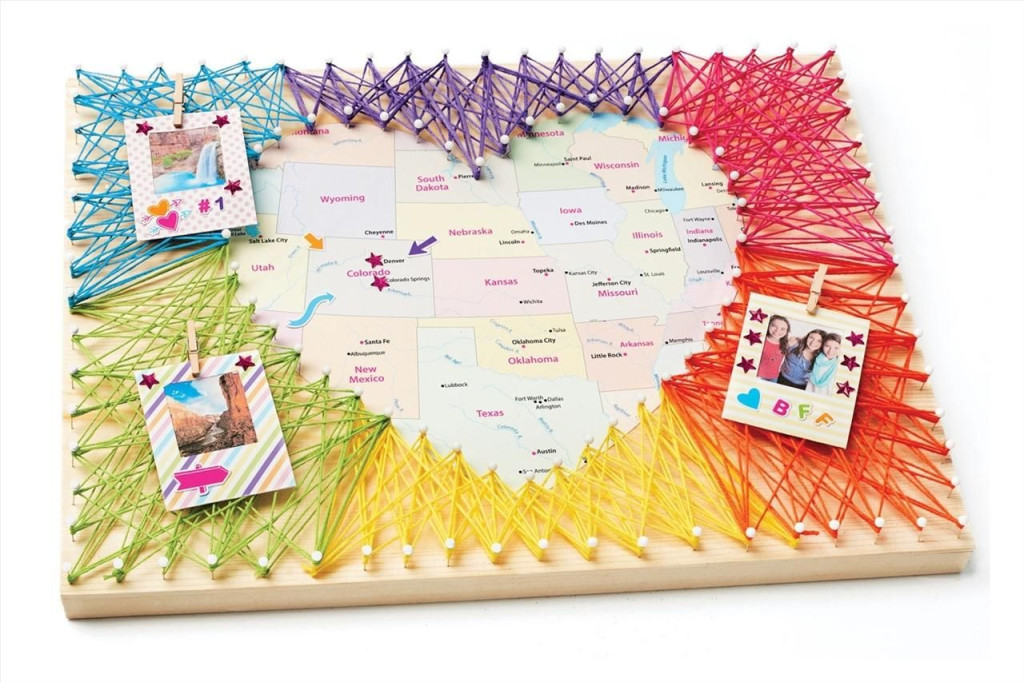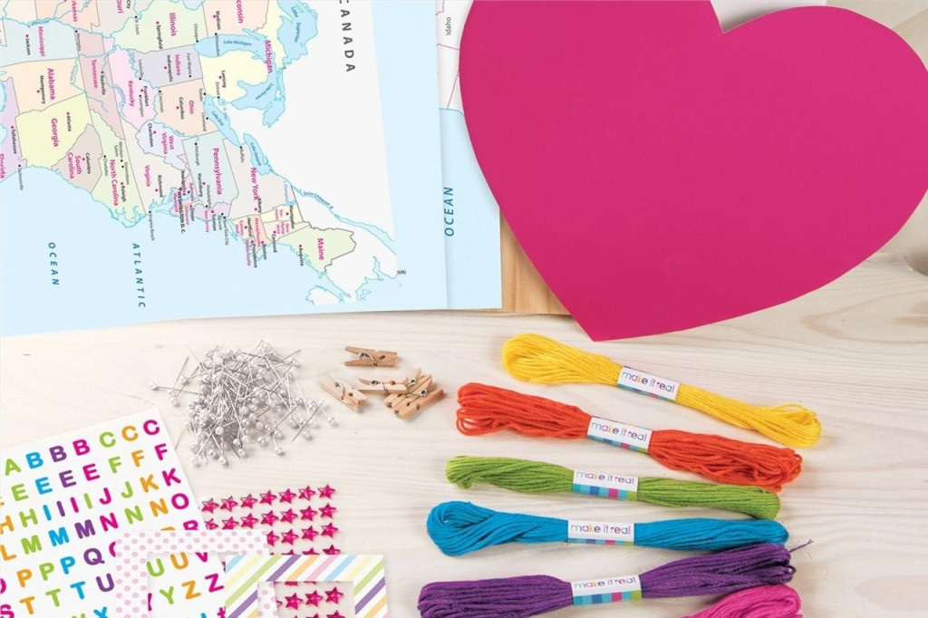 A szív jelzi, mely helyek és pillanatok a legkedvesebb emlékek számára. Helyezd el a térképet a kép közepére, alkosd meg a színes cérnákból a nagy szívet, hogy minden szép pillanatot megjelölhess rajta, és emlékezetessé tehess egy-egy keretbe illesztett fotó segítségével!