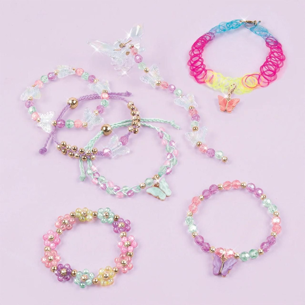 A Make It Real Bájos pillangós ékszerkészítő szettben mintegy 271 darab különböző méretű és formájú gyöngyöt találsz halvány, varázslatos színekben, melyek a kék, a lila, a rózsaszín és a sárga legtisztább hatású árnyalataival öltöztetnek fel, és aranyszínű gömb gyöngyökkel teheted őket elegánssá.