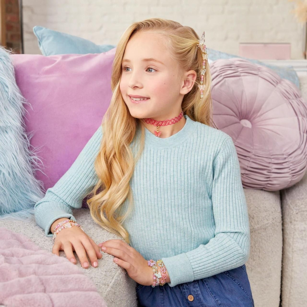 Kombináld a színeket, formákat és méreteket. Fűzd fel sorban a gyöngyöket egy választott rendszer szerint, vagy vegyítsd őket a mágikus hangulatért. Akár több fonalat is kombinálhatsz, hogy még különlegesebb ékszert készíts, amiket helyenként szép charmokkal díszítesz. A három pillangó meséje költözhet a csuklóra a kék, lila és pasztell színű lepkékkel. A szett tartalmával akár 5 ékszert is elkészíthetsz, karkötő mellett készíthetsz nyakláncot és különleges hajdíszeket is.
