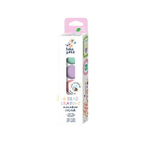 A Haku Yoka zsírkréták különleges felületüknek és alakjuknak köszönhetően kényelmes és biztos fogást biztosítanak a kicsik számára. A természetes színekkel örömteli lesz a rajzolás minden gyerkőc számára. Az öko kréták 10% méhviasz felhasználásával készültek, csomagolásuk FSC papírból gyártott. Nem hagynak foltot. A csomagban 6 db különböző színű gyöngy alakú kréta található.