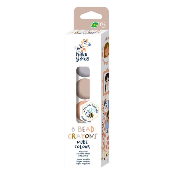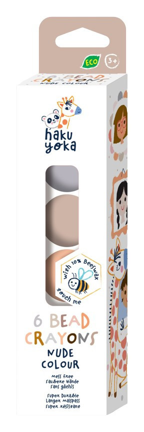 A Haku Yoka zsírkréták különleges felületüknek és alakjuknak köszönhetően kényelmes és biztos fogást biztosítanak a kicsik számára. A természetes színekkel örömteli lesz a rajzolás minden gyerkőc számára. Az öko kréták 10% méhviasz felhasználásával készültek, csomagolásuk FSC papírból gyártott. Nem hagynak foltot. A csomagban 6 db különböző színű gyöngy alakú kréta található.