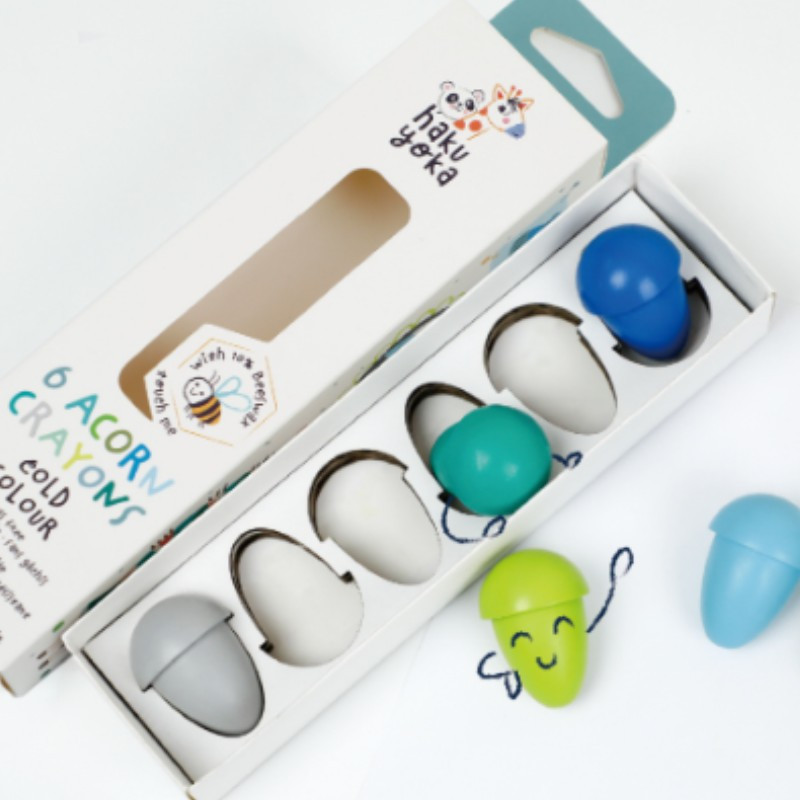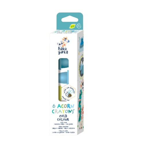 A Haku Yoka zsírkréták különleges felületüknek és alakjuknak köszönhetően kényelmes és biztos fogást biztosítanak a kicsik számára. A természetes és élénk színekkel örömteli lesz a rajzolás minden gyerkőc számára. Az öko kréták 10% méhviasz felhasználásával készültek, csomagolásuk FSC papírból gyártott. Nem hagynak foltot. A csomagban 6 db különböző színű makk alakú kréta található.