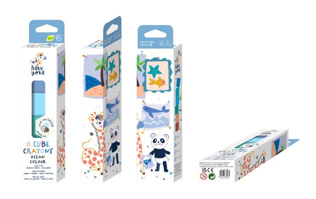 A Haku Yoka zsírkréták különleges felületüknek és alakjuknak köszönhetően kényelmes és biztos fogást biztosítanak a kicsik számára. A természetes és élénk színekkel örömteli lesz a rajzolás minden gyerkőc számára. Az öko kréták 10% méhviasz felhasználásával készültek, csomagolásuk FSC papírból gyártott. Nem hagynak foltot. A csomagban 6 db különböző színű kocka alakú kréta található.
