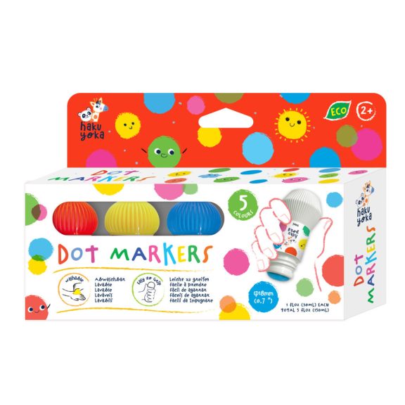 A maroknyomdákkal a gyerekek varázslatos és rendetlenségmentes módon fedezhetik fel a színes pontfestést! A csomagban 5 élénk színű nyomda található, melyek átmárője 18 mm. A nyomdák 30ml festéket tartalmaznak.