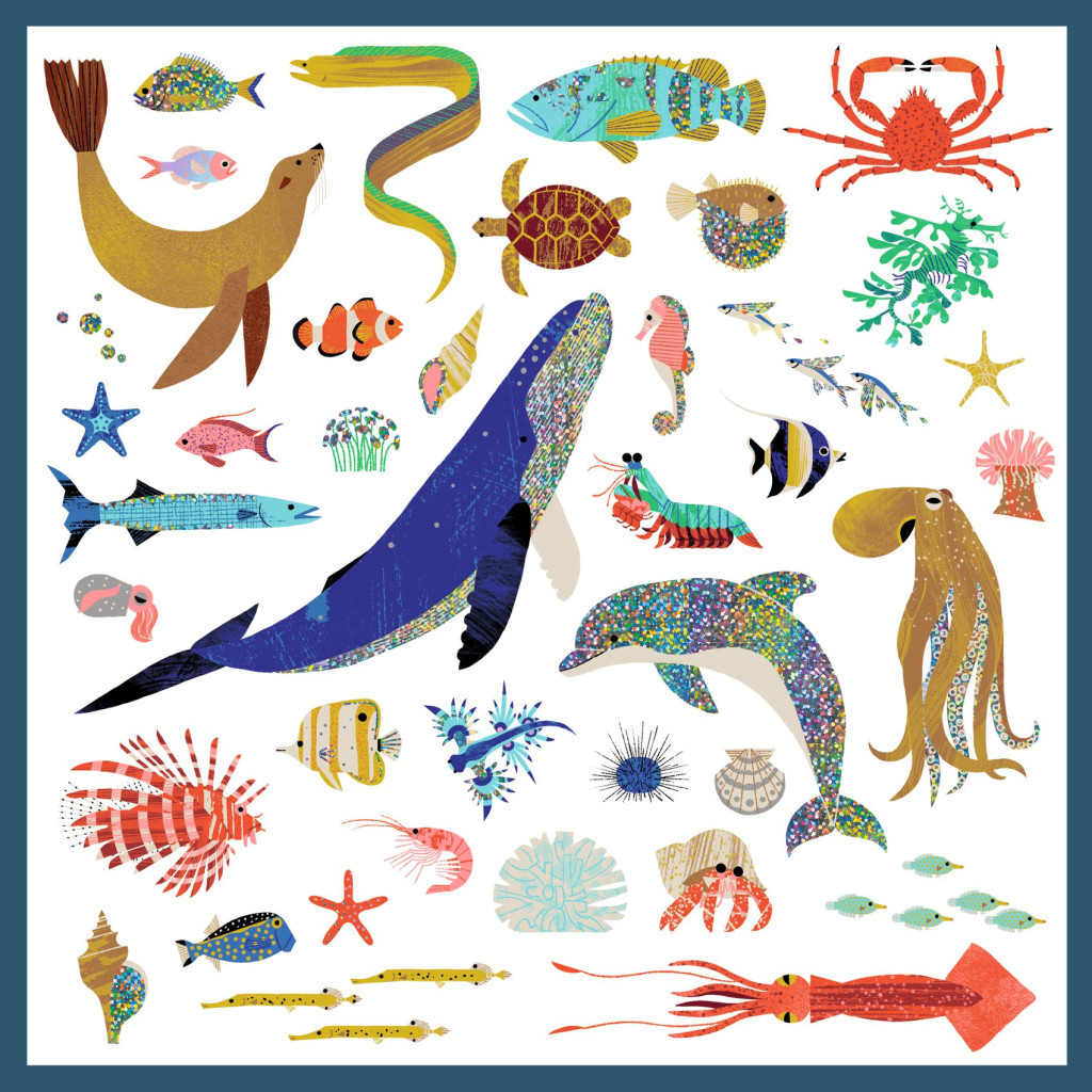 Óceán élővilága matricákon.