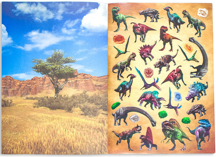 10 db háttér és 5 ív dinoszauruszos matrica egy füzetben.