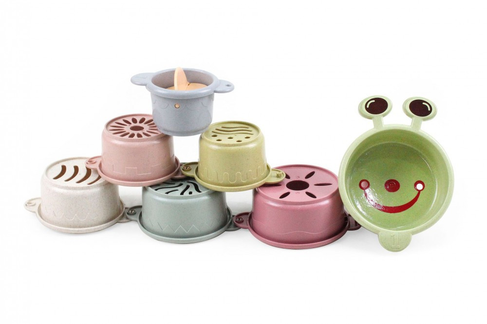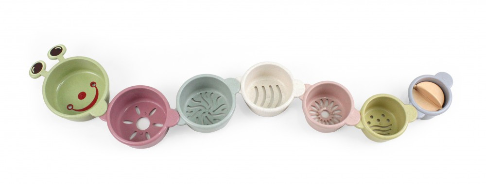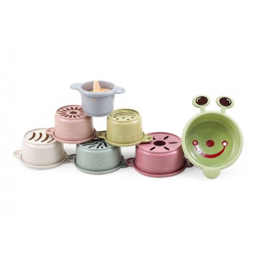 Ezek a vicces csészék segítenek, hogy a babák beleszeressenek a fürdési időbe. A játék fokozza a kíváncsiságot és meghozza a kedvet a felfedezéshez. Minden csésze alján különböző mintázatban elrendezett lyukak találhatóak, melyeken átfolyik a víz, így még érdekesebb a játék. A csészék egymásba rakhatóak, így könnyebb tárolni őket.