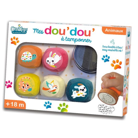 Első nyomdakészlet kisgyermekeknek, amely már 18 hónapos kortól használható!A puha markolható nyomda lehetővé teszi a gyerekek számára a kényelmes tartást.A puha labdafogantyú levehető és mosógépben mosható.A doboz 5 nyomdát és egy tintapárnát tartalmaz. A tinta vízzel könnyedén kimosható.