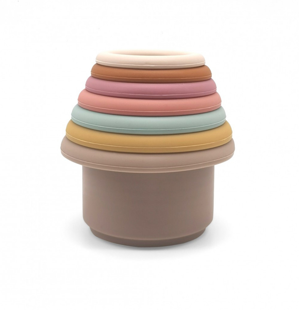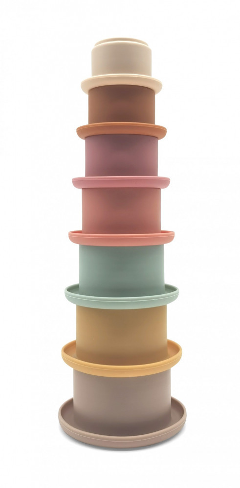 Szilikonból készült aranyos építőjáték meseszép pasztelles árnyalatokkal. A csészéket egymásra helyezve torony építhető, de akár egymásba is lehet rakni őket.
