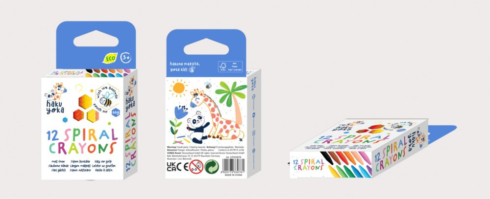 A Haku Yoka zsírkréták különleges felületüknek és alakjuknak köszönhetően kényelmes és biztos fogást biztosítanak a kicsik számára. A természetes és élénk színekkel örömteli lesz a rajzolás minden gyerkőc számára. Az öko kréták 10% méhviasz felhasználásával készültek, csomagolásuk FSC papírból gyártott. Nem hagynak foltot. A csomagban 12 db különböző színű kréta található.