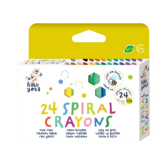A Haku Yoka zsírkréták különleges felületüknek és alakjuknak köszönhetően kényelmes és biztos fogást biztosítanak a kicsik számára. A természetes és élénk színekkel örömteli lesz a rajzolás minden gyerkőc számára. Az öko kréták 10% méhviasz felhasználásával készültek, csomagolásuk FSC papírból gyártott. Nem hagynak foltot. A csomagban 24 db különböző színű kréta található.