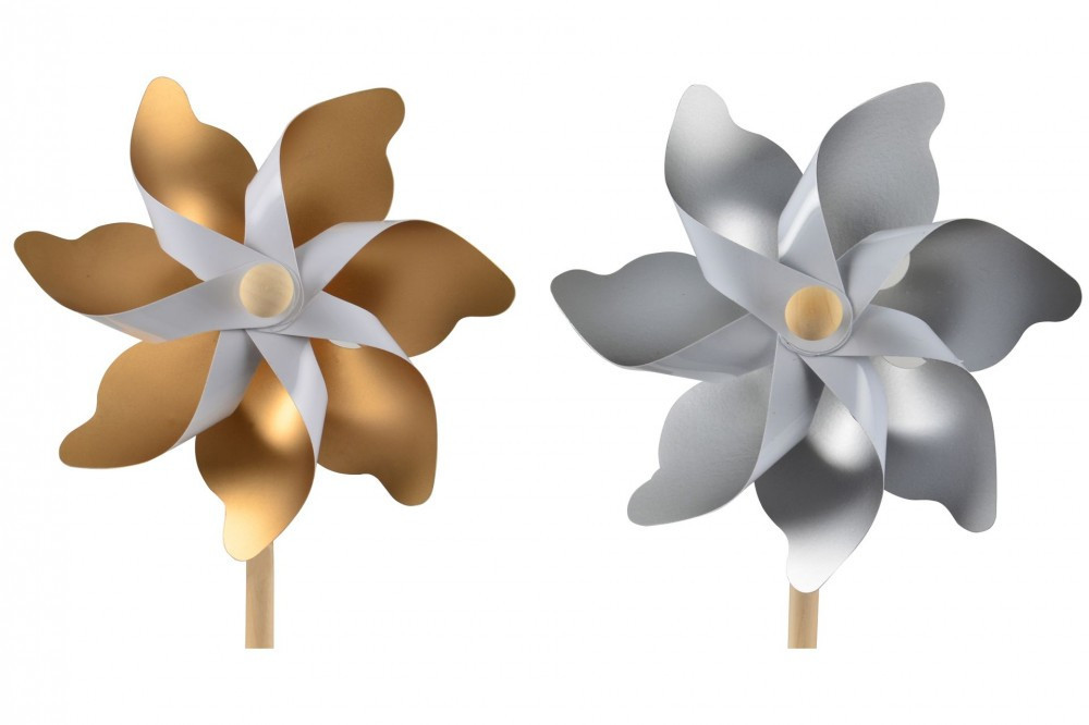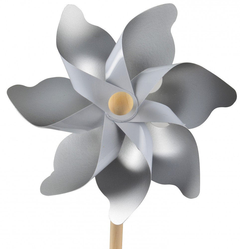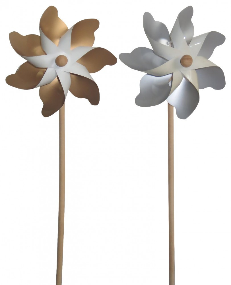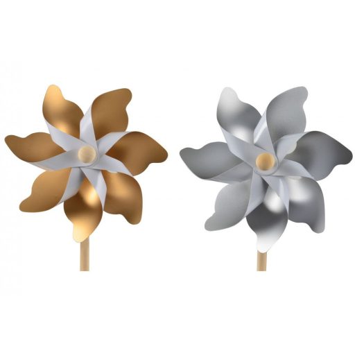 A hurkapálcára rögzített színpompás, fényes papírból készült játék a szél hatására pörögni kezd.