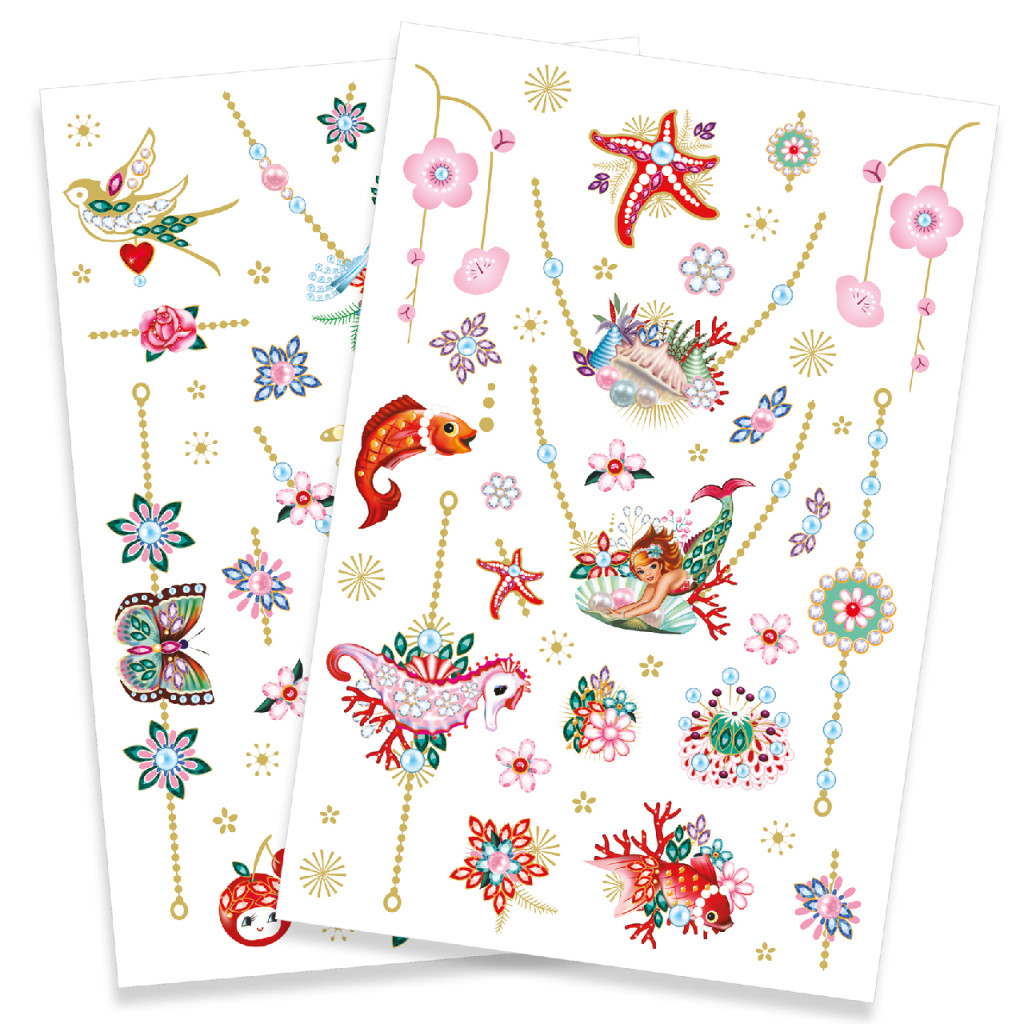 A "Fiona ékszerei" tetováló matricagyűjtemény könnyen kezelhető kisebbek számára is, használata 3 éves kortól ajánlott. Különlegessége, hogy az ékszermatricák metállosan fénylenek, ezzel külön meglepetést okozva viselőjének és kis barátainak. A kiválasztott minta egy kis víz segítségével könnyen felhelyezhető a kívánt bőrterületre. Eltávolítása szappanos vízzel vagy gyengéd sminklemosó használatával ajánlott.