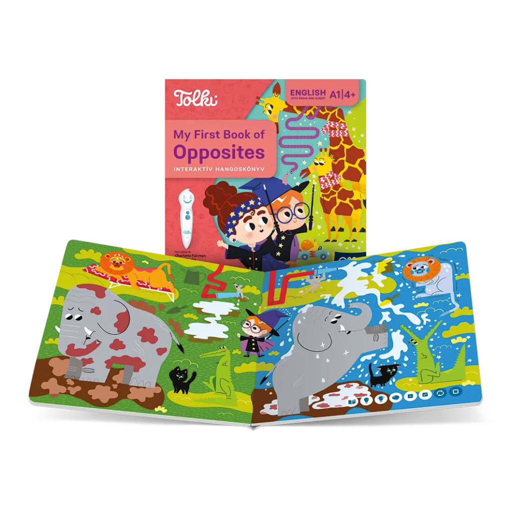 Tanulj velünk angolul! Lépj be egy színes világba Emmával és Alberttel együtt! Segítségükkel megtanulhatod sok-sok állat angol nevét. Az állatok bemutatják neked az ellentétek világát, hiszen van köztük gyors és lassú, kicsi és nagy, vidám és szomorú egyaránt. Közben megtanulunk számolni egészen 12-ig, gyakoroljuk a színek neveit, és kvízjátékokkal tesszük próbára a tudásunkat. Játssz velünk, és meglátod, hogy az angol nyelv nem csak a nagyoknak való! FIGYELEM! A könyv használatához szükség van egy Tolki készletből származó elektronikus tollra! A tollat ez a termék nem tartalmazza! Elektronikus tollal működő, egynyelvű angol nyelvkönyv. 3 éves kortól ajánljuk! Olvasóink minden oldalon kvízjátékokkal tehetik próbára a tudásukat. A könyv segítségével a gyerekek saját érdeklődési körüknek és tempójuknak megfelelően tanulhatnak meg angol szavakat és kifejezéseket.