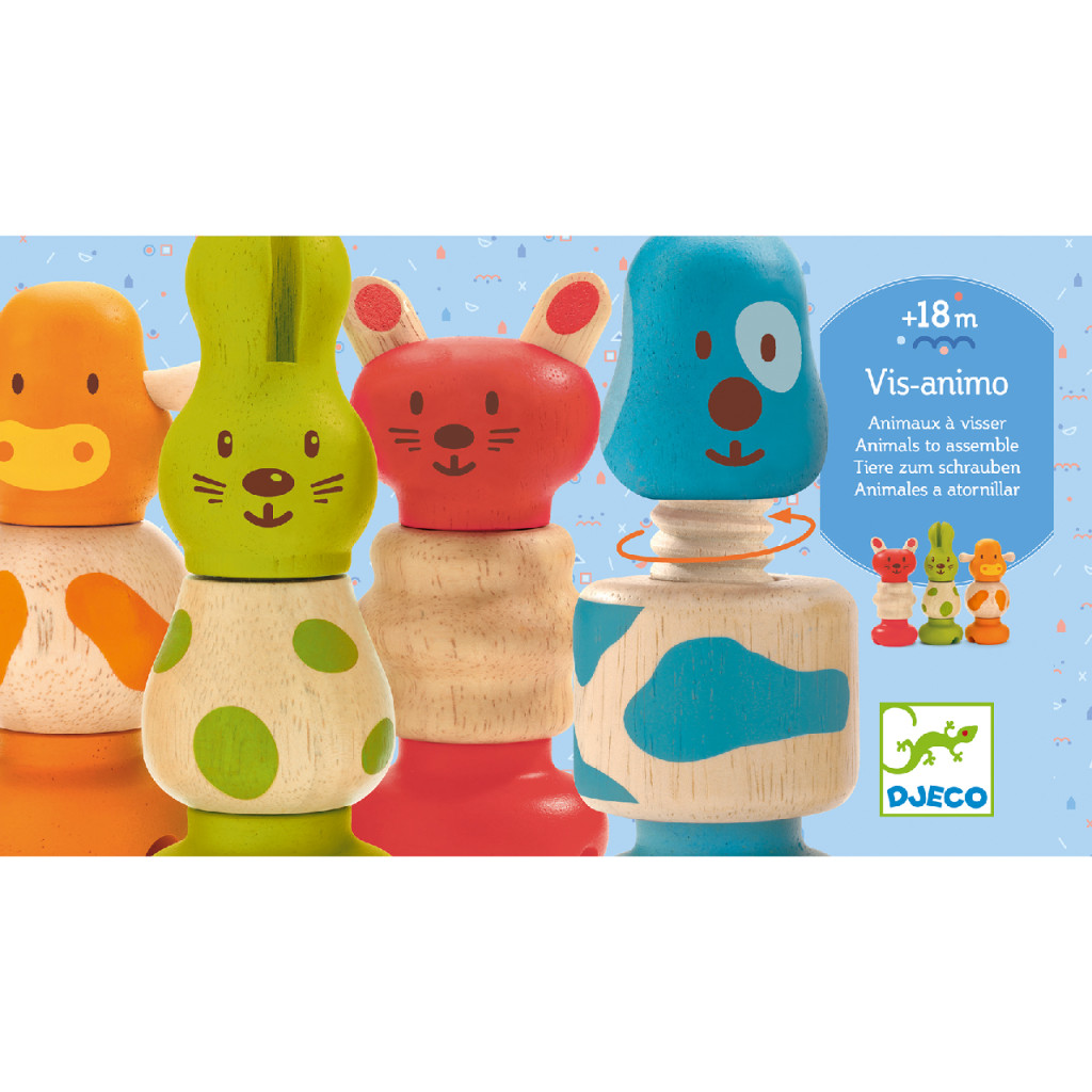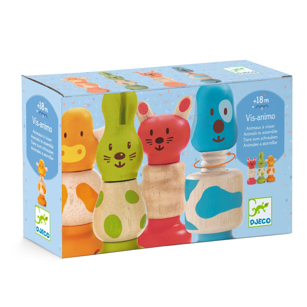 Fából készült össze-vissza csavarozható aranyos állatfigurák.