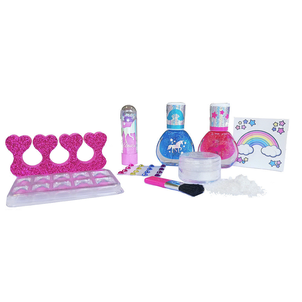 Ebben az unikornis alakú átlátszó tasakban sok minden rejlik, mellyel a kislányok felfedezhetik a körömápolás rejtelmeit!