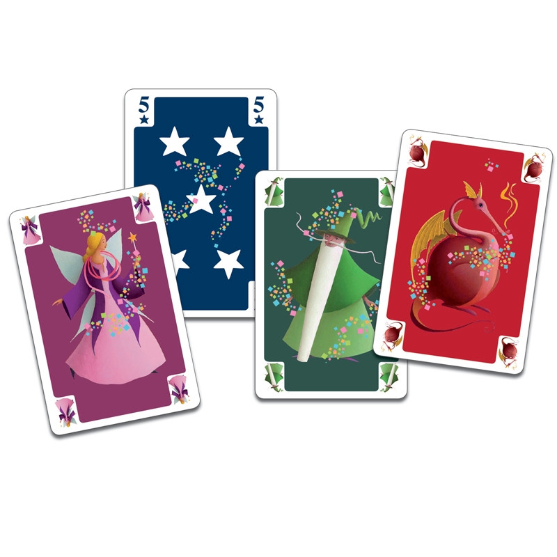 • Hagyományos kártyák: 40 db / 4 (zöld, kék, piros, lila) x 10 kártya