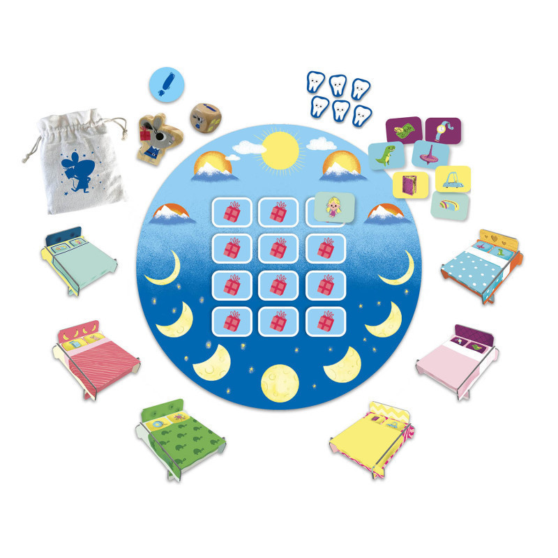 Tik-tak, tik-tak, fogy az idő! Segíts a Fogtündérnek megtalálni a megfelelő ajándékokat a párnák alá, hogy minél több fogat gyűjthessen össze, mielőtt a nap felkel! A gyerekek által kedvelt témájú memória társasjáték.