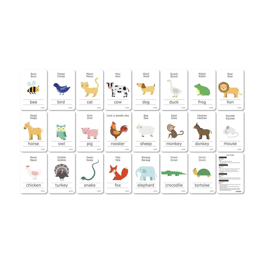 A szülő elolvashatja a kártyát, és szórakoztató tevékenységeket végezhet, például állathangokat utánozhat. Segít megismerkedni az állatokkal és fejleszti a kommunikációt.