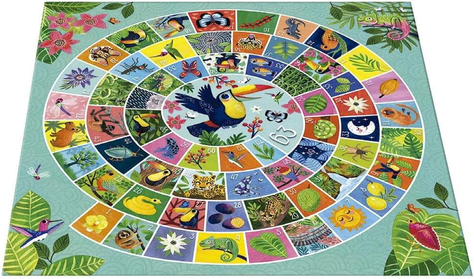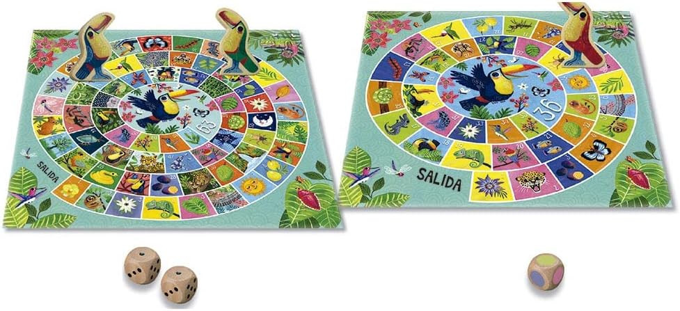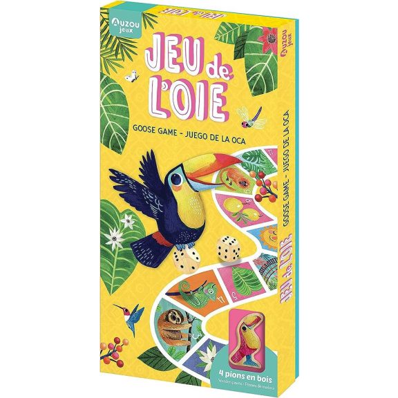 Fedezd fel a klasszikus játékokat az Auzou társasaival! Ezzel a liba játékkal ezúttal a dzsungel szívébe kalauzolunk! Dobj a kockával és kövesd lépj előre a bábuddal, légy te az első, aki eljut a dzsungel végére! A 4 gyönyörű fából készült figurát és a 3 fa dobókockát egy puha vászontáskában tárolhatod. A játéktábla két oldalas, így két nehézségi szinten játszhatsz a játékkal: egy könnyebb szintet is, ahol számok helyett a színek szerint kell lépned, és egy nehezebb szinten, ahol a dobott számot kell lelépned a táblán.
