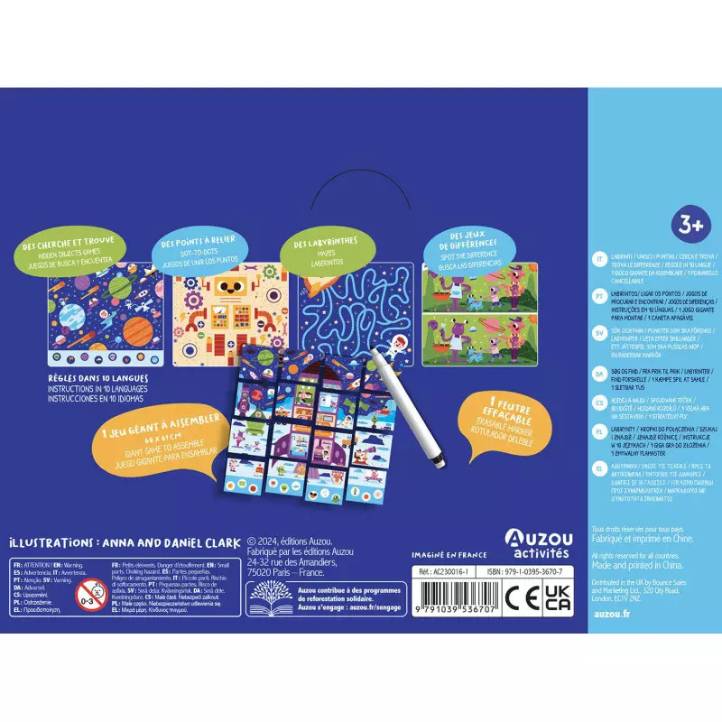 Ez a csomag különböző feladványokkal tornáztatja meg az agytekervényeket: számösszekötős játék, különbségkeresés, labirintus, mennyiségkeresés. 20 db laminált, letörölhető feladatkártya és egy nagy, a kártyák hátoldalából összeállítható óriás feladvány segítségével a gyerekek játékosan fejleszthetik logikai gondolkodásukat. A csomagban 1 letörölhető filctoll is található, ezáltal a feladványok újra és újra megfejthetők.