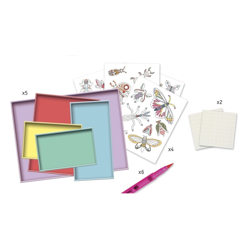 Az előre kivágott pillangóformákat tetszés szerint lehet kiszínezni, majd a készlethez tartozó képkeretekbe helyezni, stabilan beleragasztani. Az elkészült alkotás kedves dekoráció lehet még a nagyi falán is, ha ajándékba kapja az unokájától!
