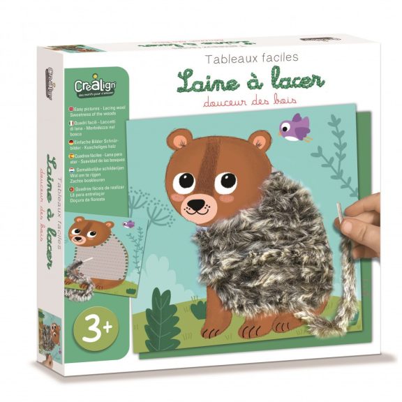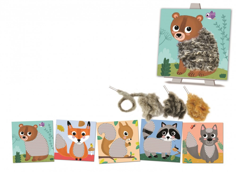A cipőfűző végű fonalakkal az állatoknak puha bundát készíthetsz! Fűzd őket végig az előre perforált képeken és az állatok megelevenednek! A játékot bármikor elölről kezdheted, hiszen a szálakat kihúzhatod és újra befűzheted, a színeket is cserélgetheted.