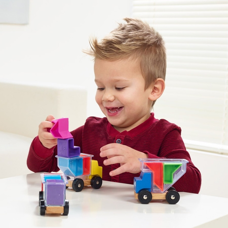 Válassz egy feladványt. Vedd magadhoz a feladványban látható teherautót és "csomagokat". A többi elemet tedd félre, most nem lesz rájuk szükség. A kiválasztott elemeket helyezd be teherautóba úgy, hogy: