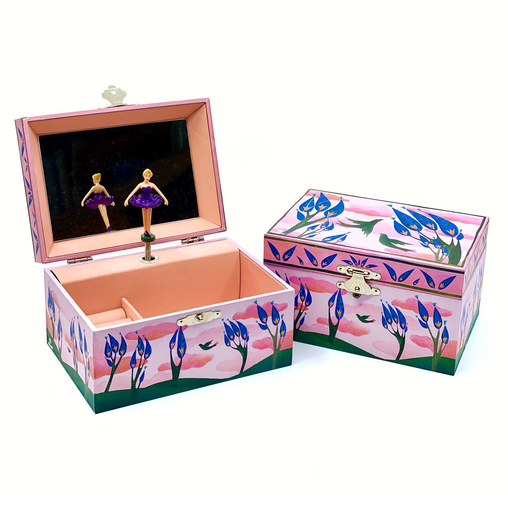 Zenélő ékszerdoboz forgó balerinával, tükörrel, gyűrűtartóval-Birds