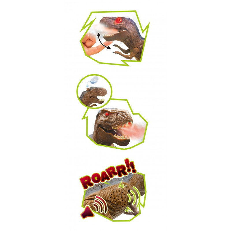 Újdonság a Buki márkától! Egy 21 cm magas, 31 cm hosszú távirányítható tirannoszaurusz, amely füstöt ad ki a száján, világít a szeme, lábaival ráadásul haladásra is képes! Irányítsd a T-Rex mozgását a távirányítóval, melnyek hatótávolsága 5 méter.