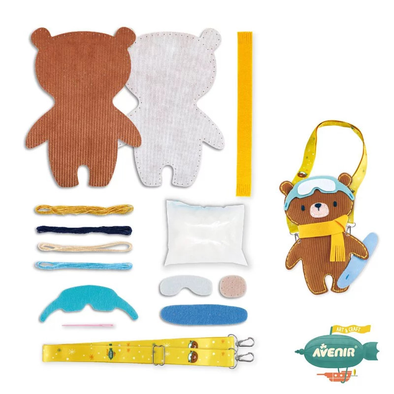 A puha és stílusos kordbársony anyagot a perforálás miatt igazán könnyű megvarrni. A csomag emellett tartalmazza az öntapadós filcanyagokat, a játék elkészítéséhez szükséges felszerelést, valamint egy állítható vállpántot.